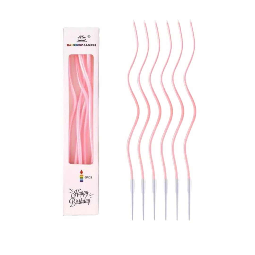 Gedrehte Kuchenkerzen, Rosa Perle, 11 cm - 6 Stk.