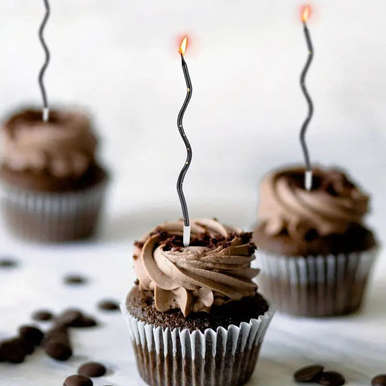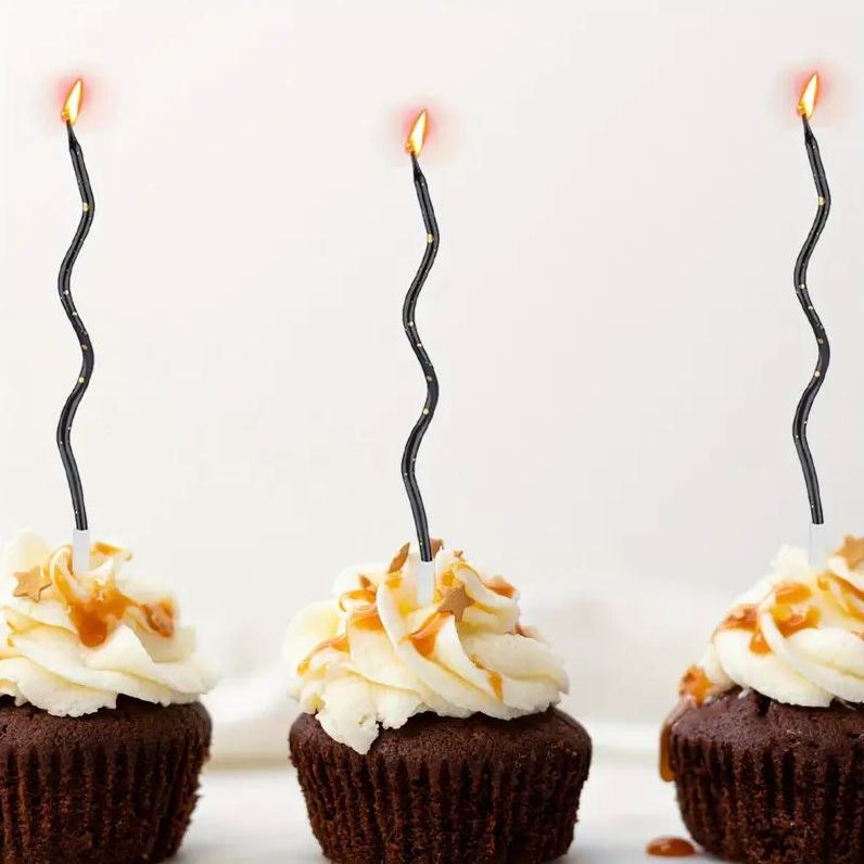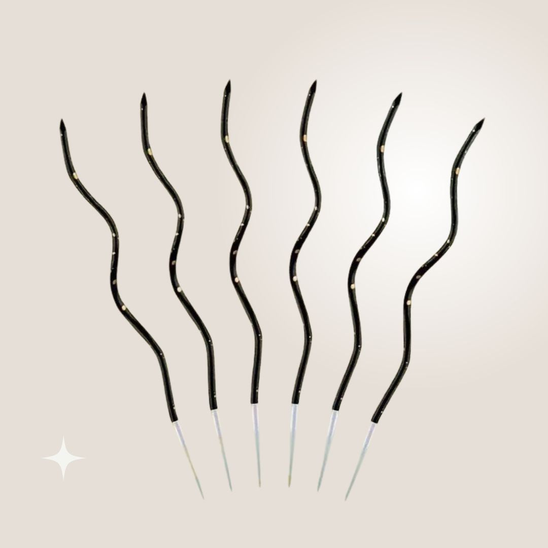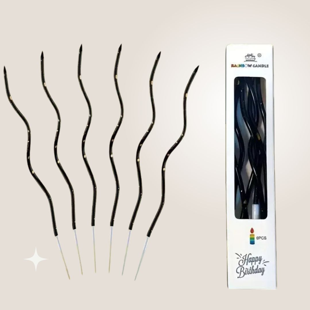 Gedrehte Kuchenkerzen, Schwarz mit Gold, 11 cm - 6 Stk.