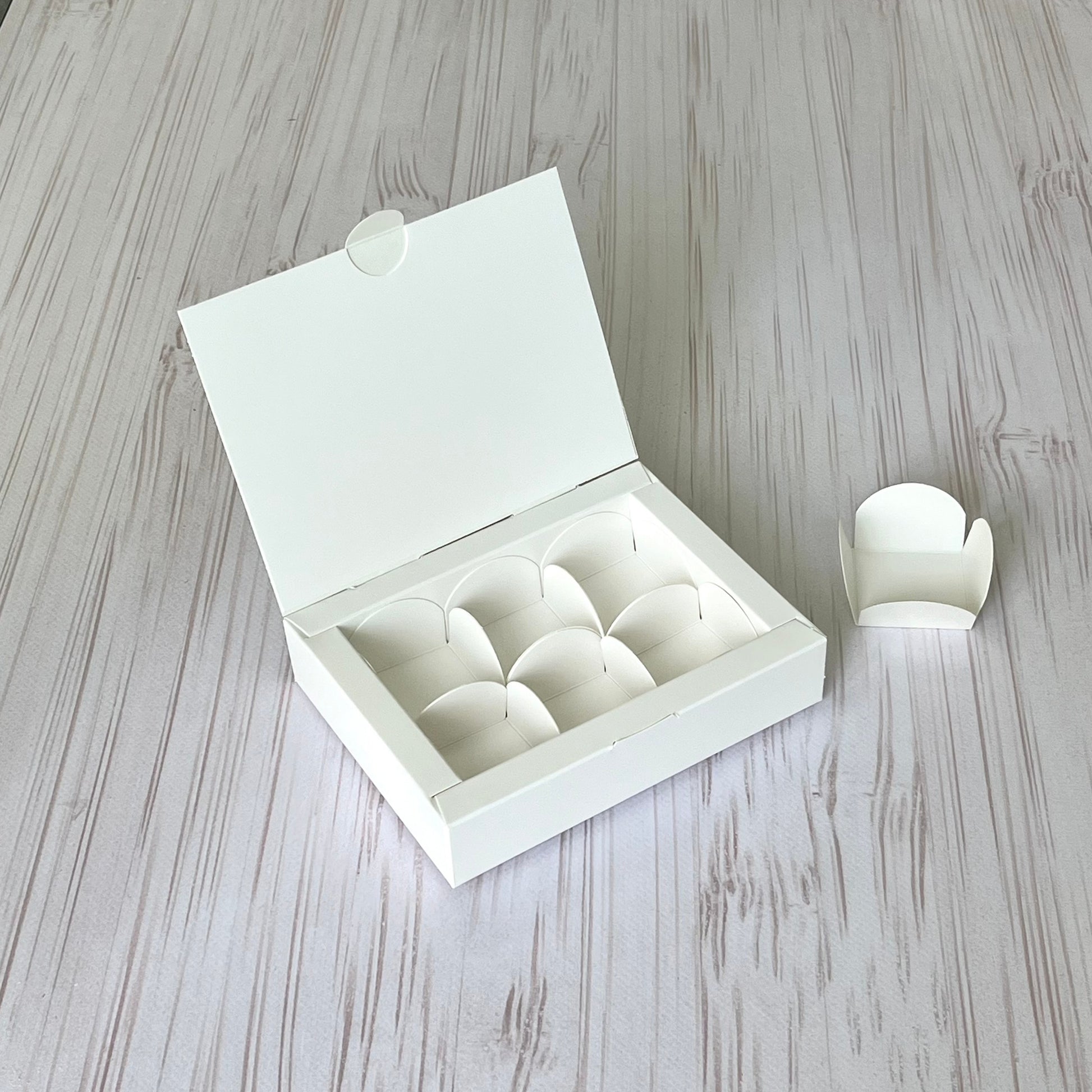 Schachtel für 6 Pralinen, Weiß, 110x145x30 mm, 5 Stk