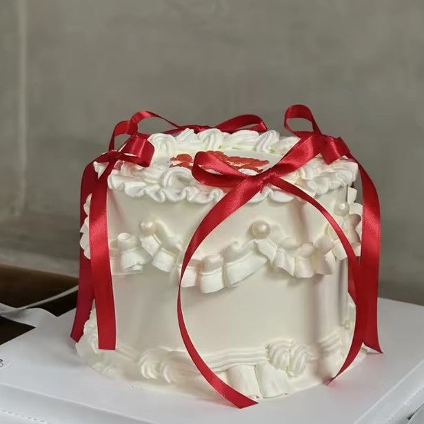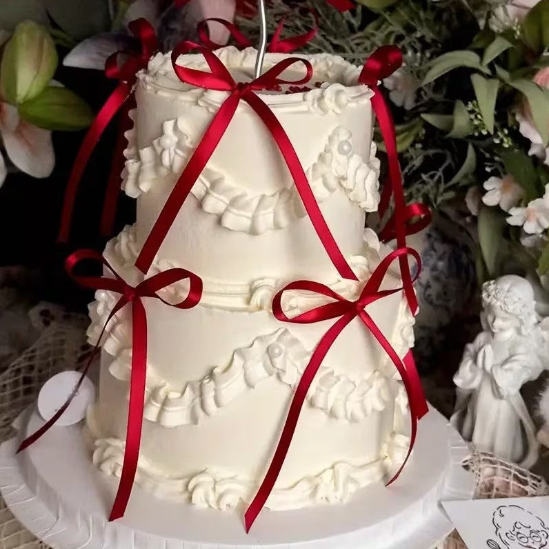 Elegante rote Schleifen – das perfekte Detail für eine stilvolle Lambeth-Torte.